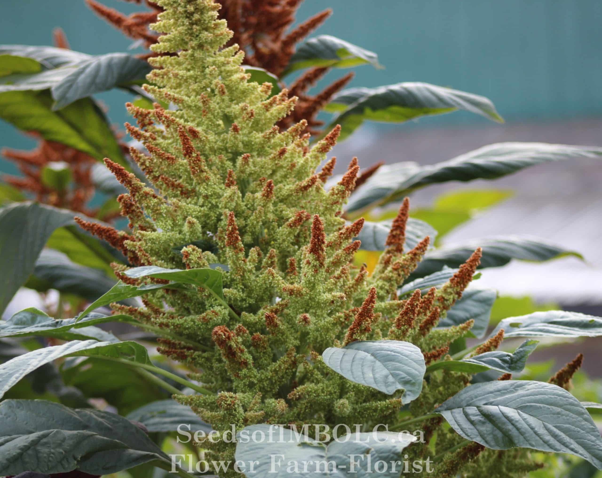 Amaranth cruentus  -Beautiful plumes of apple green flowers tinted with coppery bronze .  Large textural stems make wonderful addition to large arrangements.