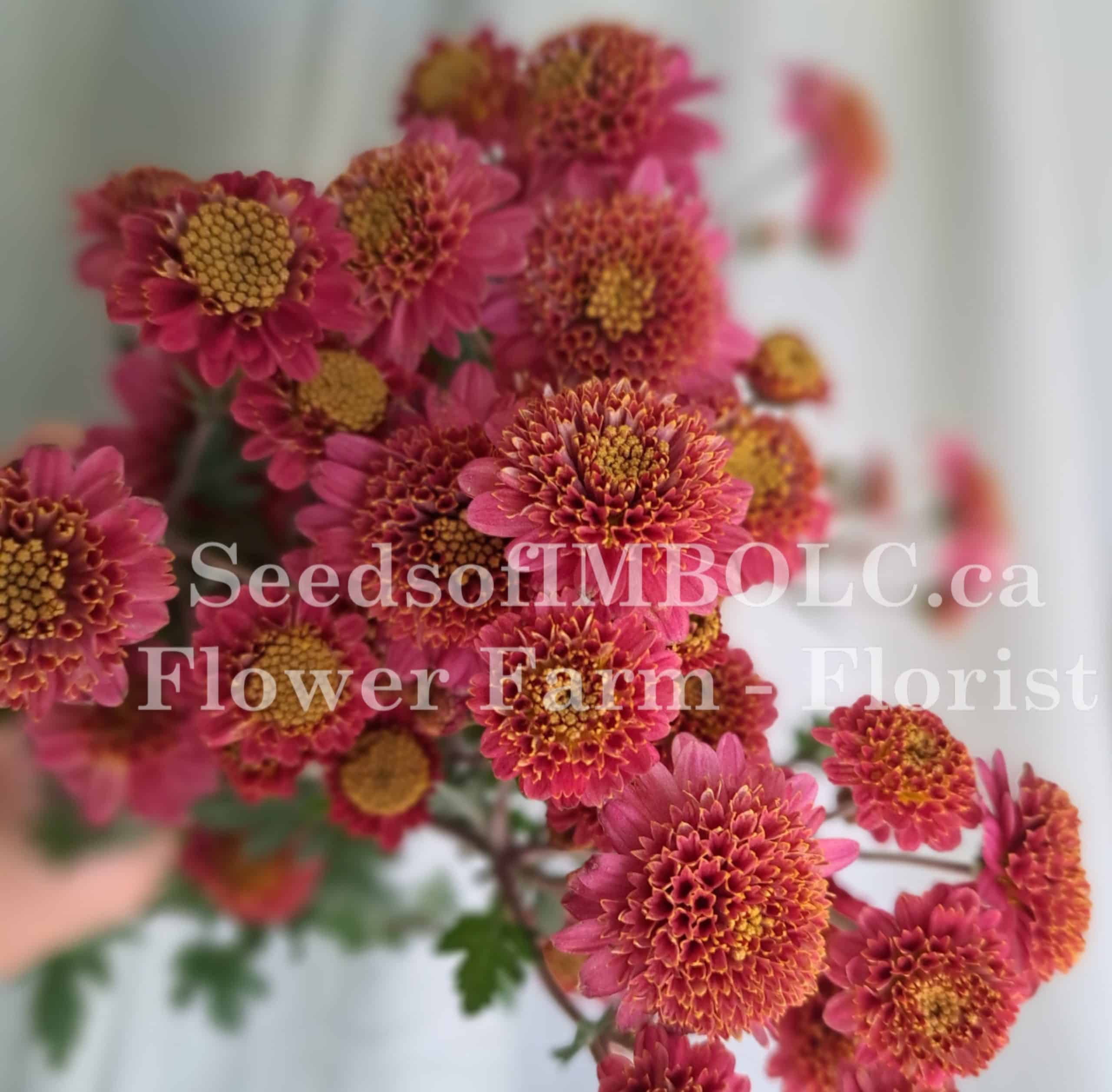 Cutest anemone type with a hard to describe colour. A muted rusty orange/red that is so useful in arrangements The small size (1″) great for corsages, boutonnieres – airy accents in fall floral work. This is a late bloomer.